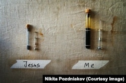 – У вас есть работа: два шприца и две пробирки с кровью, подпись: "Jesus" и "me". Объясните?