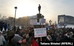 В итоге продержаться на морозе протестующие смогли только 30 минут. Все это время они активно подхватывали лозунги выступающих, среди которых чаще всего встречались призывы отменить рост тарифов и отправить в отставку губернатора области и мэра Новосибирска. Особенно пришедших возмутил тот факт, что вместо митинга именно в этот день и час мэрия запустила на площадь Ленина снегоуборочные машины: