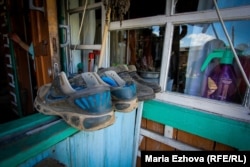 На веревке в доме висит белье, но не сохнет – слишком большая влажность. Чтобы просушить помещение, приходится топить печь и спать с открытыми настежь окнам и дверями. Вообще хозяйствует Владимир справно. Хорошая нестарая мебель, компьютер на столе. Сам одет чисто, в камуфляжные штаны и белую футболку с логотипом партии власти. Гордо говорит: голосовал за нее.