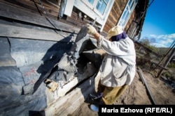 Плотниковы выплат тоже пока не видели. Но подготовки к зиме это не отменяет. Уже закупили овощи, для собак ограду поставили, глава семьи чинит фундамент (на половине дома бревна буквально вымыло, и строение висит в воздухе), выгребает завалы с того места, которое раньше было огородом. Александр Васильевич говорит, что помог бы грейдер или трактор, но огород на камнях все равно уже не посадить.