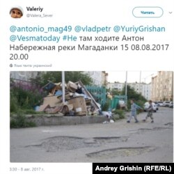 ​Еще в мае блогер Антон Афанасьев написал в своем твиттере, что в 2016 году мэрия Магадана потратила немалые деньги на благоустройство улицы Берзина, но результата он не заметил. В ответ Юрий Гришан и написал эту фразу "Не там ходишь, Антон".