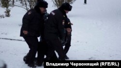 Участнику мероприятия, организованного "Артподготовкой", за отставку российского президента полицейские пояснили, что он "подходит под ориентировку". Задержанный отказывался идти, подгибал ноги, требовал показать ориентировку и составить протокол задержания на месте.