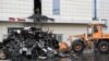 Горы цветов и мягких игрушек аккуратно прикрыты полиэтиленом. У мемориала погибшим в "Зимней вишне" в Кемерове по-прежнему дежурят волонтеры.