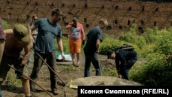 Дмитрий говорит, что если здесь применить тяжелую технику, нет гарантий, что старинная кладка не рухнет, так что важен именно ручной труд. Он приходит сюда уже в четвертый раз, хотя дома ждут 10 соток огорода.