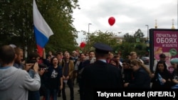 Шествие остановилось возле краевого суда и повернуло обратно. Корреспондент "Сибирь.Реалий" следит за ситуацией.