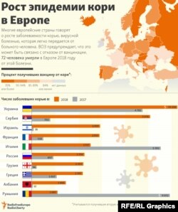 Кэтрин Хаберсаат из Всемирной организации здравоохранения говорит, что дезинформация – это лишь одна из причин недавнего всплеска заболеваемости корью в Восточной и Юго-Восточной Европе из-за снижения количества привитых в этом регионе детей. В числе прочих факторов – недостаточная осведомленность об угрозах человеческому организму в связи с инфекционным заболеванием, недоверие к медицинским работникам и недоступность услуг.