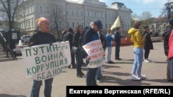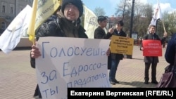 На митинг "За смену политэлит, социально-экономического курса и соблюдение Конституции РФ" в центре Иркутска 11 мая собралось порядка 50 человек. Участники акции потребовали отставки президента России Владимира Путина.