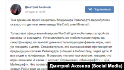 Школьник из Кургана создал петицию в соцсети "ВКонтакте" с призывом "уволить депутата, который предложил запретить Майнкрафт". Речь об инициативе депутата Заксобрания Красноярского края Владимира Рейнгардта запретить популярную компьютерную игру Minecraft. Он увидел, как школьники играют в нее со своих телефонов. По его словам, игра пропагандирует насилие и делает детей гиперактивными. За несколько часов петиция за отставку Рейнгардта собрала 15 тысяч подписей.