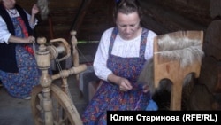 Мастер-классы проходили и в Шушенском музее-заповеднике. В советское время музей был посвящен одной теме: сибирской ссылке Ленина – он отбывал ее в Шушенском с 1897-го по 1900 годы, здесь же в 1898 году обвенчался с Надеждой Крупской. Сейчас о пребывании вождя напоминают пара домов (не сказать, чтоб в них было особенно людно) да небольшой памятник. Сегодня в музее-заповеднике главное – воссоздание быта старинной сибирской деревни. Традиционных ремесел – в том числе. Во время фестиваля здесь проходили мастер-классы по выделке льна, прядению и ткачеству.