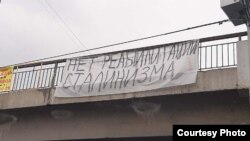 В центре Новосибирска, на автомобильной развязке неизвестные вывесили 18 июля растяжку с надписью: "Нет реабилитации сталинизма". Баннер появился рядом с автовокзалом и в нескольких сотнях метров от штаба обкома КПРФ, где ранее установили бюст Сталина. Издание "Тайги.инфо" отмечает, что полотно изготовлено вручную, а не в типографии.