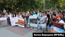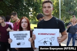 Более 300 человек вышли на согласованный митинг в центре Новосибирска с требованием к федеральным властям немедленно бросить все возможные силы на тушение лесных пожаров в Сибири. Акция протеста была организована местным штабом Алексея Навального. Как сообщает корреспондент "Сибирь.Реалии" с места событий, пришедшие держали в руках десятки плакатов с надписями: "Росгвардия, туши лесные пожары, а не избивай мирных граждан", "Дышать экономически невыгодно", "Требуем прекратить убивать природное достояние Сибири".