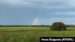 Сквозь тучи и мелкий дождь над селами Октябрьского района вдруг пробивается солнце и появляется радуга. Правда, уже через пару дней край снова ждут осадки. И даже объявлено штормовое предупреждение.
