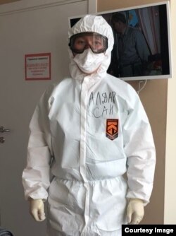 Алдар прошел медобследование, затем инструктаж по работе. Его научили правильно надевать и снимать "скафандр", как он сам называет свой защитный костюм.