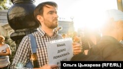 – У меня другого руководства нет. Пусть вернут нам Сергея Ивановича, пусть он продолжает работать. Я за него не голосовал, сто лет на выборы не хожу. Но сейчас я вышел за него, и буду выходить за него, – говорит Артем Демченко, он несет плакат "Я/Мы Фургал". – А Фургал как кость в горле застрял у Москвы. У него же рейтинг выше, чем у Путина. Он много работал, посрезал чиновникам зарплату, накрыл коррупционные схемы. А то, что он бизнесмен, – да все это знают. Каких-то бизнесменов он якобы убил? Да в 2004 году бандиты только были, а не бизнесмены, и я ему верю, что он не убивал никого. Про нового, Дегтярева, толком не знаю ничего. Но слышал что-то, мол, он нас дубинками будет разгонять. Ага, посмотрю я, как он будет нас разгонять. Мне кажется, ему уже чемодан обратно пора собирать.