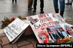 – Смотри, снимает! Да мы тебя все уже запомнили за два месяца! – со всей откровенностью говорили им окружающие. Между тем перед началом шествия протестующие решили соорудить нечто вроде "мемориала". "Банду Путина похороним и в шествие!" – пошутил кто-то. Люди уложили на тротуар перед крыльцом дома правительства несколько плакатов с портретами главных лиц страны, продажных, по мнению протестующих, судей и других чиновников. Здесь же оказались изображения лидера ЛДПР Владимира Жириновского и нынешнего врио губернатора Хабаровского края Михаила Дегтярева. Рядом бросили цветы.