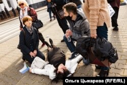 – Фашисты! Фашисты! Фашисты! – срывая голос, кричала пенсионерка. Но омоновцы отодвигали резиновыми дубинками всех, кто пытался помочь женщине, лежавшей на асфальте: она упала во время атаки омоновцев и, как выяснилось потом, получила черепно-мозговую травму и оказалась в больнице. Свидетели говорят, что ее толкнул кто-то из сотрудников правоохранительных органов.
