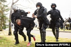 После этого митингующих начали задерживать по наводке сотрудников Центра "Э". Среди них с группой ОМОНа был замечен человек, похожий на подполковника полиции, заместителя руководителя Центра "Э" Александра Шустова, который на митинг пришел работать в штатском.