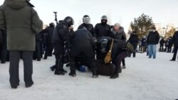 Полицейских и росгвардейцев сегодня большее трехсот. Люди пришли к зданию облдумы и скандируют: "Свободу!", полицейские по громкоговорителю призывают их разойтись. Начались задержания – забирают людей с плакатами. Как передает наш корреспондент, троих выцепили из толпы: сотрудники полиции группой выбегают в толпу участников, хватают по одному и быстро уводят в автозак. В ответ на это люди из первого ряда встали в сцепку.