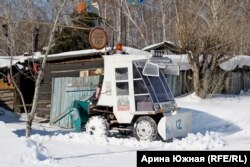 Одно из самых известных изобретений Гришаева – средство передвижения, известное среди местных как НЛО. Оно не рассчитано на холода, поэтому сейчас припарковано в сарае. Однако с наступлением теплой погоды изобретатель пользуется им практически постоянно – для поездок в Кормиловку, административный центр Кормиловского района, к которому относится Байкал.