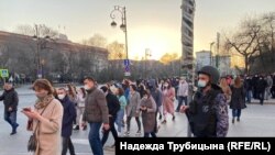 ОМОН занял площадь в Тюмени, на которой проходила акция в поддержку Навального. Из-за этого штаб политика предложил начать шествие. Люди пошли по центральной улице города.