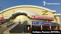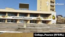 Лозунг "Своих не бросаем" остался на легкоатлетическом манеже на набережной – примерно такой баннер с Z из георгиевской ленты был на библиотеке.