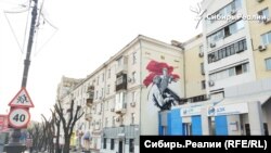В центре Новосибирска на удивление мало Z-пропаганды. Начало главной улицы – Красного проспекта – вообще выгладит довоенным, в том числе перед зданием правительства и мэрией. Лишь на остановке "Дом офицеров", практически напротив городского ЗАГСа, на боковой стене притаилась бабушка с красным флагом, хотя, кажется все уже знают, что не в поддержку России она взяла этот флаг.