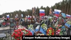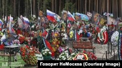 Пропавшего без вести Валерия Зятькова похоронили почти спустя год после его гибели. 30-летнему Роману Барабанову, которого не стало в мае, под фото, где он в куртке цвета хаки с нашивкой V сидит у дерева и улыбается, принесли охапку алых роз. На могиле Максима Калашникова стоит лампада и лежат конфеты.