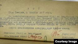 Мы, нижеподписавшиеся: Комендант УНКВД по Дон.Области – Сержант госбезопасности АКСЕЛЬРОД, Отв. Дежурный УНКВД БРЕДИХИН, в присутствии Дон.Облпрокурора тов.РУДЕНКО привели приговор в исполнение над осужденным к ВМУН-расстрелу СУЛИМКО Яков Ивановичем, 1905 г. рожд., в порядке приказа №00485 от 11-го августа 1937 г.