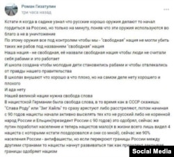 "В 13 лет я палкой по веткам х.ячил и карбид взрывал … а тут нацизм , мировой порядок , свобода слова … п..дили мало дома", – пишет Gnake