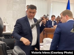 В конце заседания прокуроры Андрей Синюк и Ярослав Ущапивский показывают страшные вещдоки – автоматы российских солдат. Номер одного из них совпадает с номером личного оружия, названного Вадимом Шишимариным – 8439778. Из него и был убит Александр Шелипов.