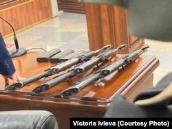 Прокуроры показывают страшные вещдоки – автоматы российских солдат